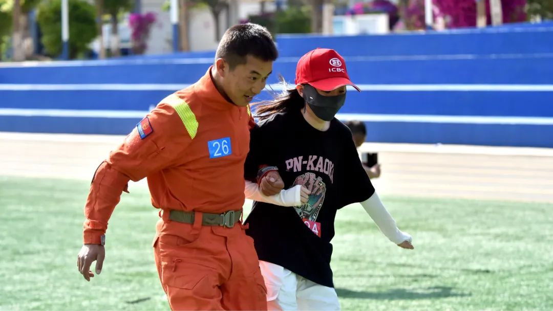 两人三足环节,各组消防救援人员和工商银行青年员工精诚协作,诠释了团结就是力量。