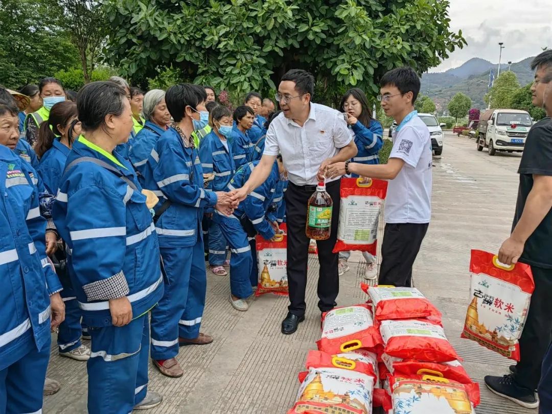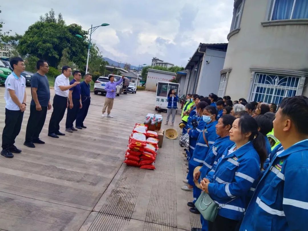 6月8日,永平县人大常委会副主任、县总工会主席罗李、县总工会常务副主席蒋玉保、县总工会副主席张正军一行到大理州企业家协会常务副会长单位——云南顺丰洱海环保科技股份有限公司下属的永平县顺丰洱海环保科技有限责任公司诚挚慰问一线环卫工人。