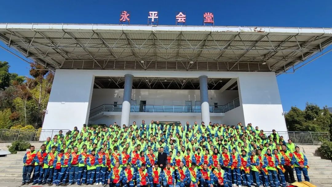 最后,出席本次活动的领导与全体一线环卫工人代表进行合影留念。