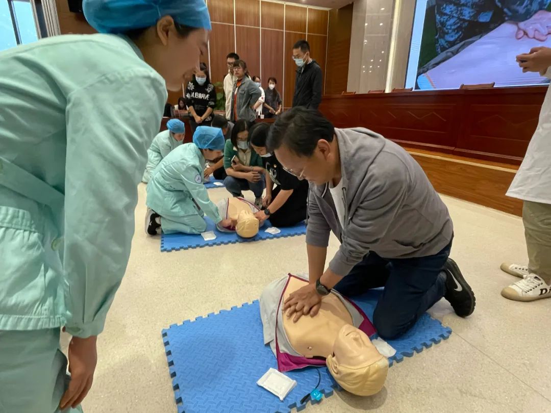 活动分三个阶段进行,首先附属医院各相关科室医师分别从ACS症状、体征及心脏病早期症状辨识、高血压的防治、急性脑卒中识别与预防、创伤现场急救注意事项、心肺复苏,海姆立克法等五个方面进行了培训讲解,并现场对各公司人员提出的问题进行了解答。