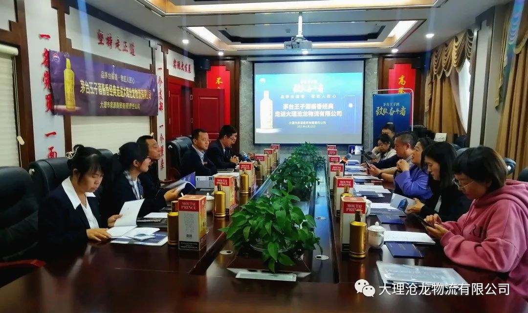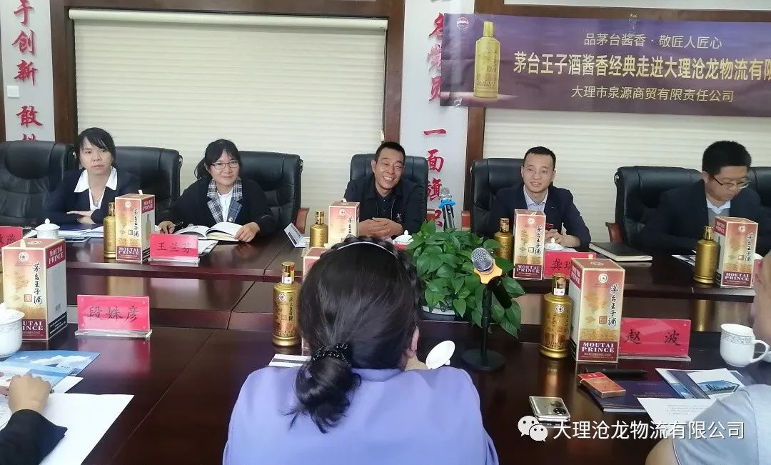 茅台王子酒酱香经典走进大理沧龙物流有限公司交流座谈 2023-06-29 来源: 编辑: 浏览量:759 6月13日下午,大理市泉源商贸有限责任公司赵利红董事长、副总经理赵波等一行六人携“茅台王子酒酱香经典”走进大理州企业家协会常务副会长单位——大理沧龙物流有限公司。公司董事长龚勇全等高中层管理人员热情接待来宾。本次交流会旨在了解双方企业在发展中的心路历程,交流沟通寻求共识,展望未来共同发展的机会。 交流座谈会在沧龙物流会议室举行。泉源商贸赵利红董事长首先向大家介绍了茅台王子酒酱香经典的基本情况,茅台王子酒是自强不息奋斗精神的传承人,是精益求精匠人精神的代言人。紧接着介绍了泉源商贸的发展历程,泉源商贸成立于1992年到现在已经走过了31个年头,从一个小商铺逐渐发展到今天的集副食品的批发零售、生鲜配送、超市、房地产、仓储物流等几大板块的综合型商贸服务公司。这也是不断奋斗的真实写照,与茅台王子酒的品牌内涵不谋而合。 随后泉源商贸副总经理赵波给大家介绍了茅台酒与茅台系列酒的“三同两不同”(三同:生产工艺相同、勾调品评相同、质量管理体系相同,两不同:产地不同、周期不同)相关知识,让大家进一步走进茅台。 之后,沧龙物流副总经理龚瑞波也向大家详细介绍了公司近几年的经营情况以及下一步的发展规划。大理沧龙物流是一家主要服务于高速公路等国家重点工程项目物资供应的物流服务商,公司经过几十年的发展已经形成了“商贸物流”、“绿色能源”、“绿色食品”“智慧化物流园区服务”几大产业板块格局。 最后,"品茅台酱香·敬匠心精神"茅台王子酱香经典走进大理沧龙物流有限公司在赠酒交接仪式后结束。沧龙物流董事长龚勇全接受了赠予并表示衷心的感谢,希望双方随着对彼此的了解后有更多的交流合作机会。 通过此次交流会,大理沧龙物流有限公司与大理泉源商贸对彼此企业发展历程和文化有了进一步的了解,建立了良好的友谊,双方都表示在未来要寻求更好的合作机会,共同推进企业高质量发展。