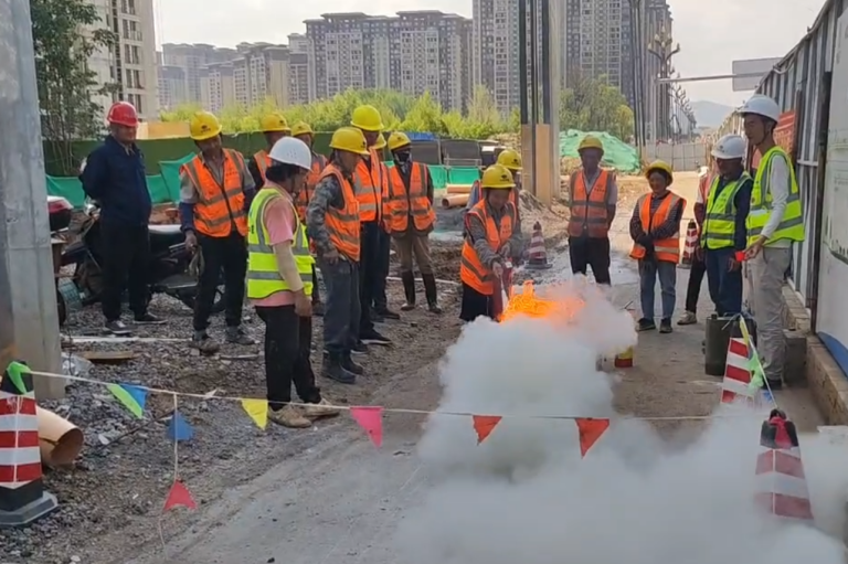 近日,昭通市管廊项目部开展了关于廊体内部起火应如何有效地进行灭火应急、火势过大应如何安全地撤离逃生、及时拨打火警电话的消防安全演练活动。