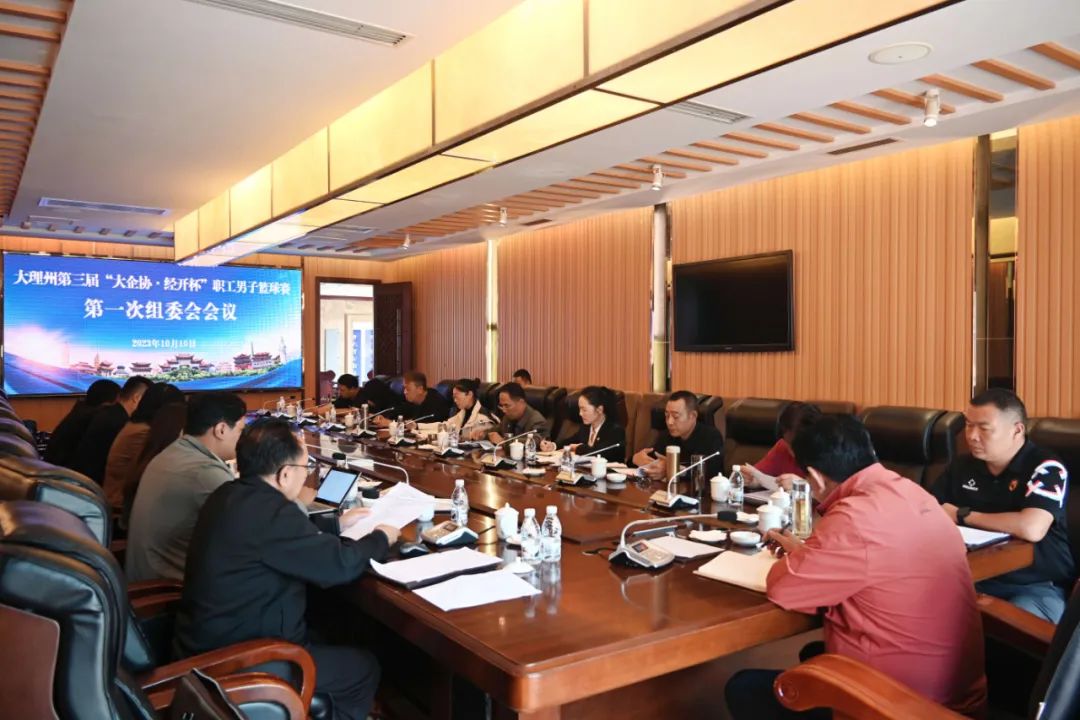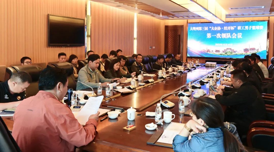 10月10日下午,大理州第三届“大企协·经开杯”职工男子篮球赛组委会召开第一次工作会议和第一次领队会议,研究决定本届赛事的相关工作,组委会主任、副主任、委员以及各参赛球队领队50多人参加了会议。大理州企业家协会会长、组委会副主任赵中柱主持会议。