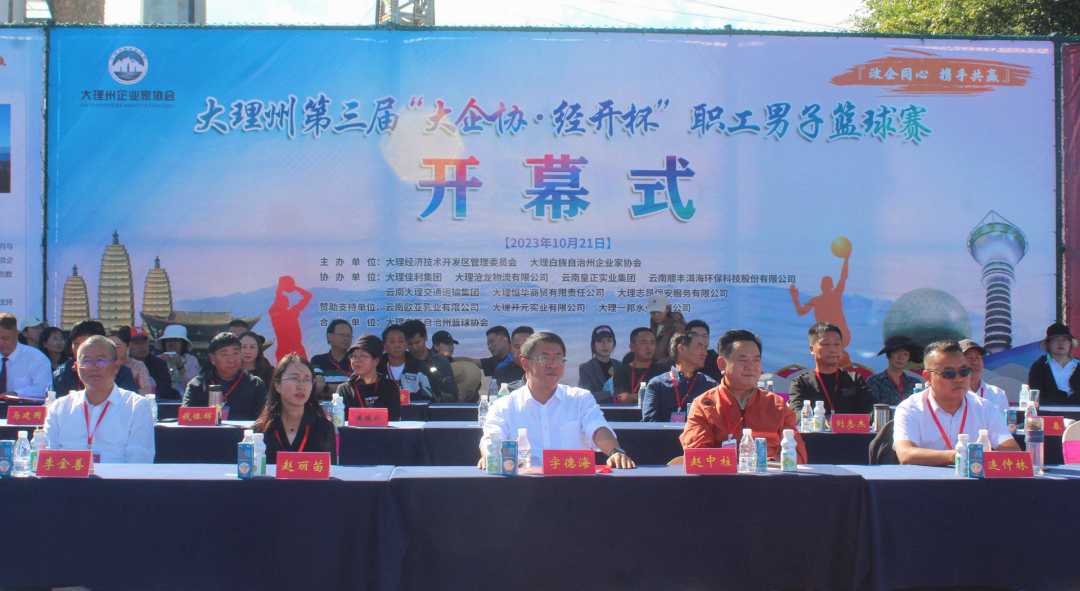 竞技十月,燃爆金秋。为深入贯彻落实党的二十大精神,动员全州广大干部职工振奋精神,锚定目标,聚精会神抓经济、全力以赴促发展和全面提高大理开区干部职工素质,丰富业余文体生活,经过一段时间的紧张筹备,大理州第三届“大企协·经开杯”职工男子篮球赛在大理公馆苍洱印象公园体育场隆重开幕。