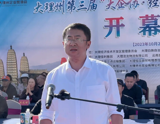 大理经开区党群工作部部长、总工会主席刘旺在致辞中表示,举办“大企协·经开杯”职工男子篮球赛的目的,就是为了全面提高全区干部职工素质,构建健康、文明的政企文化气氛,丰富职工的业余文化生活,以当好主人翁、建工新时代。希望全体参赛运动员发扬“激情执着、竞合共赢”的团队精神和“友谊第一、比赛第二”的体育精神,赛出道德风尚、赛出团队风采、赛出团结友谊,全面展示大理经开区政企团队的精神面貌和文化风采。
