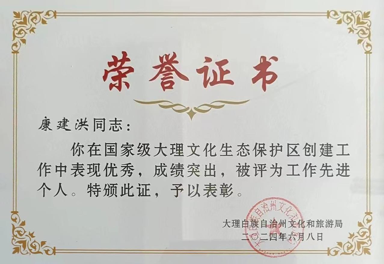 康建洪获“国家级大理生态文化保护区创建工作先进个人”称号
