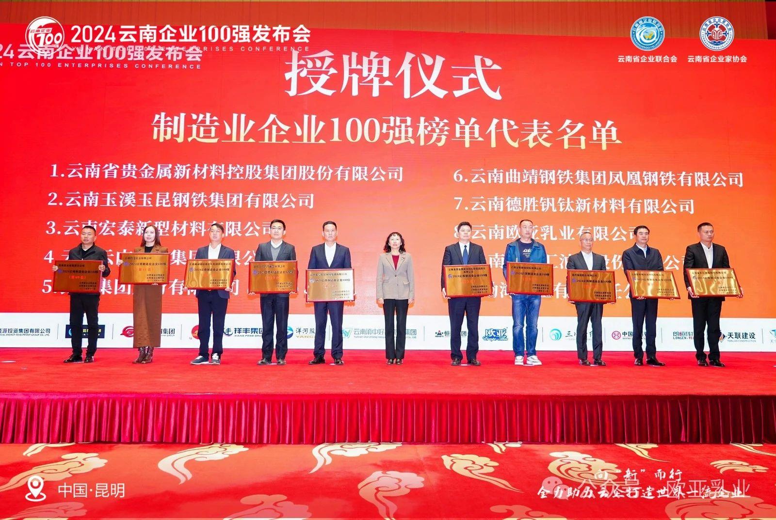 欧亚乳业荣膺“双百强”殊荣 书写高质量发展新篇章 2024-11-26 来源: 编辑: 浏览量:1215 11月22日下午,由云南省企业联合会、云南省企业家协会主办的“2024云南企业100强发布会”在昆明海埂会堂隆重举行,大理州企业家协会理事单位——云南欧亚乳业有限公司被授予“云南企业100强”“云南制造业企业100强”双百强荣誉,公司常务副总马紫怡出席会议并代表公司领取奖项。 云南欧亚乳业有限公司于2003年在云南大理注册成立,21年来,公司在各级党委、政府和行业协会商会的关心、支持下,逐步发展成为我国南方地区规模较大、效益较好、品牌影响力及市场竞争力较强的乳业龙头企业,相继荣获“农业产业化国家重点龙头企业”、中国奶业“D20”企业、“云南省重点产业领军企业”、“云南省智能制造标杆企业”、“云南省绿色食品10强企业”等百余项荣誉,“欧亚”商标被评为“中国驰名商标”。 近年来,公司以高质量发展为引领,聚焦乳业全产业链协同发展目标,加快推进智慧生态牧场、数字化乳品加工厂和线上线下整合营销体系建设。以ERP企业资源管理系统为核心,组建私域运营团队,构建一体化营销体系,并与MES制造执行系统、阿菲金牧场管理等信息系统集成互联,实现产品生产全过程质量溯源;建立省级企业技术中心,与多家高校专家合作成立工作站;通过了ISO9001、ISO22000、HACCP、GMP等多项质量体系认证和绿色有机产品认证,对原辅料从进厂到产品出厂全过程进行严格检测,保障产品质量。 此次“双百强”荣誉加持,进一步提振了企业发展信心,激励企业在高质量发展道路上勇毅前行。公司将以此为契机,持续扩大生产经营规模,为地方经济社会发展贡献更多力量。