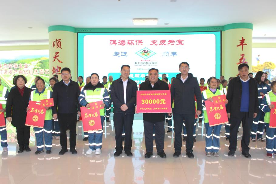 慰问组向云南顺丰洱海环保科技股份有限公司及50名洱海保护工作一线工作者代表发放慰问金和新春福袋。