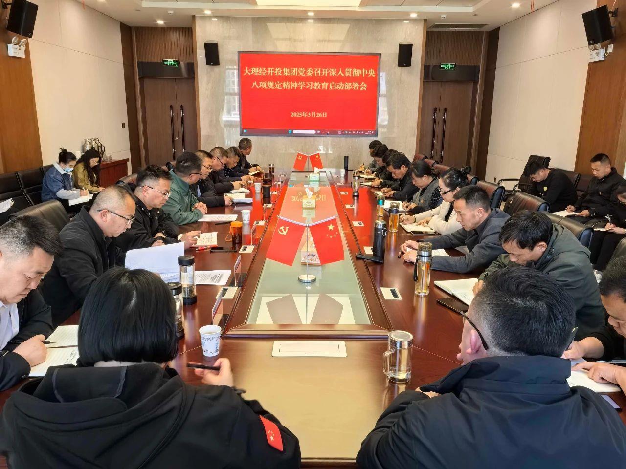 会议传达学习《大理经济技术开发区关于开展深入贯彻中央八项规定精神学习教育的实施方案》,动员部署学习教育工作,确保集团学习教育有序推进、取得成效。