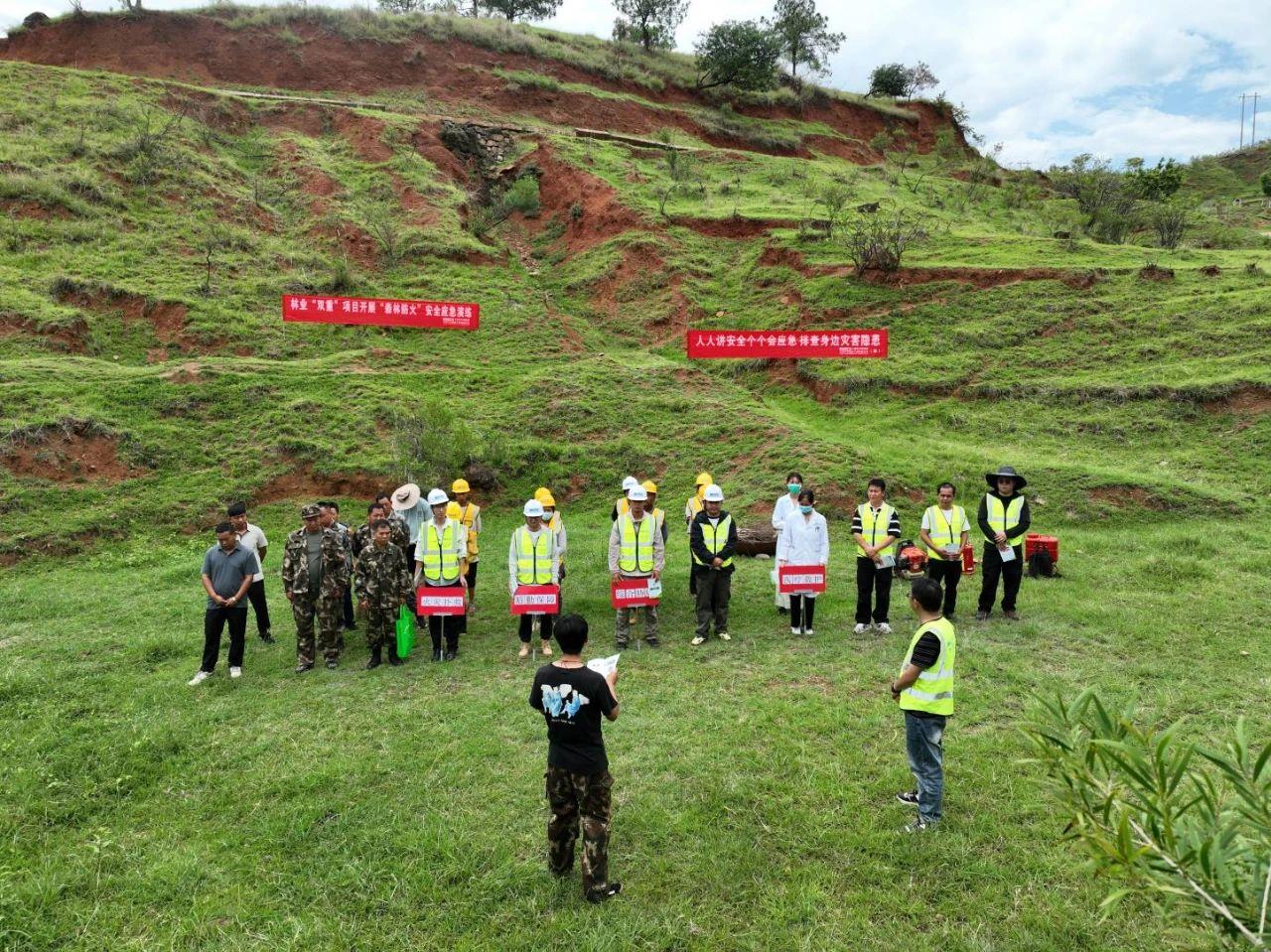 活动二:针对林业双重项目的特点,林业双重项目部与鹤庆县龙开口镇林业站及卫生院共同组织了一次森林防火综合演练。林业站站长通过案例详细讲解了火源管理、灭火器材的使用以及逃生路线的规划,并发放了《森林草原防灭火应知应会手册》;卫生院医护人员在现场示范了烧伤处理等急救技能,以强化员工的自救和互救能力。