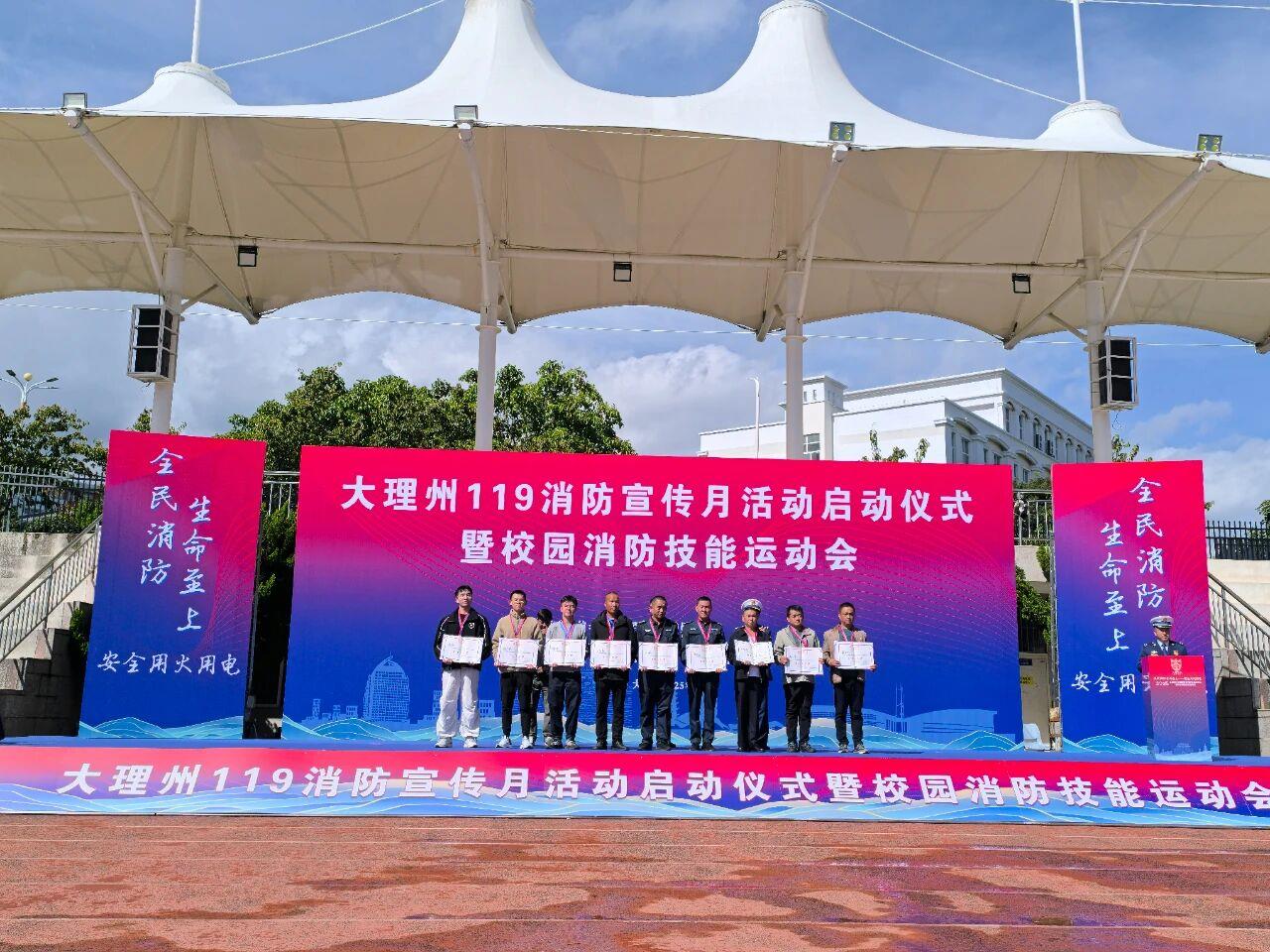 大理志昂保安公司保安员在全州校园消防技能运动会上荣获团体一等奖