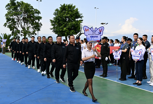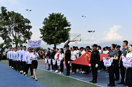 伴随着运动员进行曲,一个个整齐的运动员方阵走向运动场。首先亮相的国旗方阵,由大理佳利集团的保安队伍组成,他们训练有素,有着军人的风姿,伴随着他们整齐有力的步伐,鲜红的国旗和大理州企业家协会会旗显得愈发神圣庄严。紧随其后的是裁判员方阵,他们是公平的使者,将成为赛场上最忙碌的身影,将秉着公平、公开、公正的态度,全心全意为本次大赛护航。随后,由25个参赛单位组成的运动员方阵依次入场,他们带着满腔的热情,踏着整齐的步伐,在未来的一个月里,他们将在这个运动场上挥洒汗水,展现自己的风采。