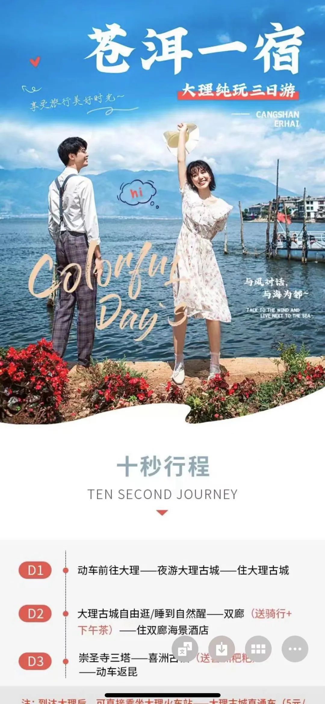 这是公司结合集团近1700职工和景区资源富集的优势打造的,具有可行性的“新媒体宣传+门票销售”的新媒体宣传营销矩阵。通过培训让集团1000名职工将抖音账号运营到至少1000粉丝,并开通“团购达人”功能。集团官方号发布内容时,这1000个账号同步发布同主题、同内容视频,迅速形成“百万级”宣传阵势,现象级宣传打造大理本地“热门话题”。