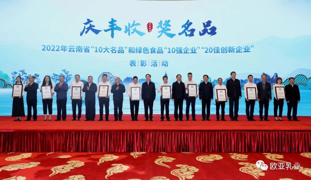 欧亚乳业再登云南省绿色食品“10强企业”荣誉殿堂