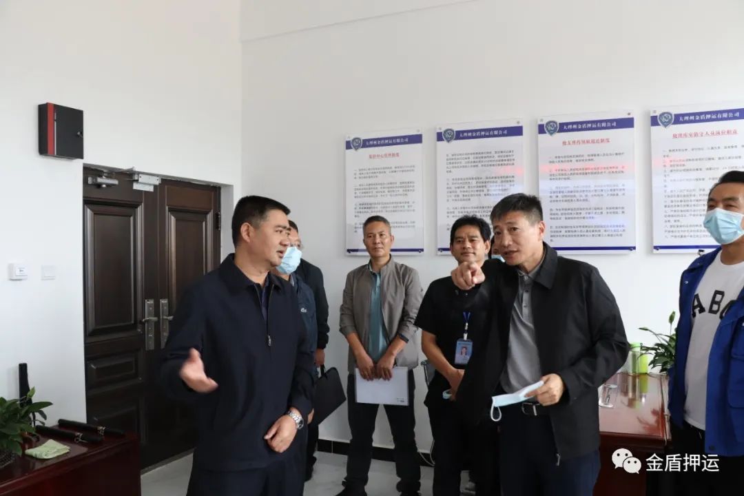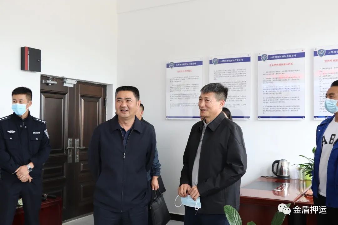 9月23日上午,云南省公安厅治安管理总队经文保处处长袁开明一行3人在大理州人民政府副州长、州公安局局长杨坤、州公安局副局长邓明、州公安局治安支队相关领导陪同下,到大理州企业家协会会员单位——大理州金盾押运公司上登基地检查指导工作。