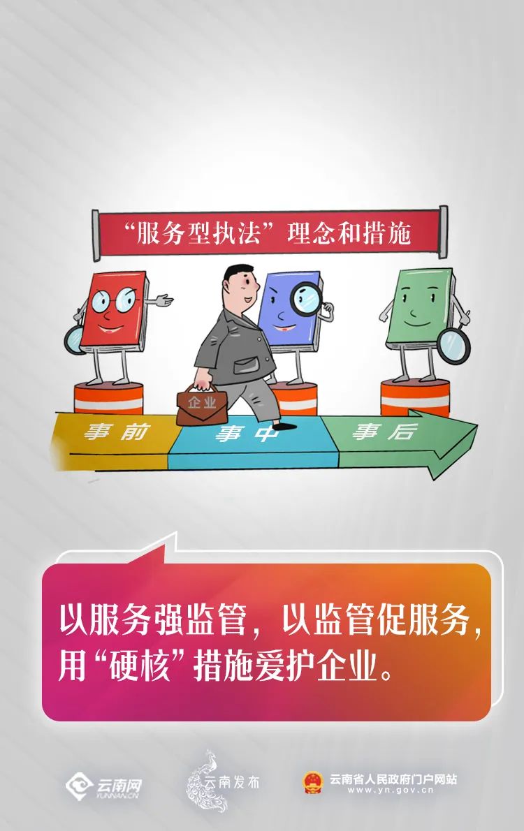 监管执法的目的,不是把企业“管死”,而是把企业“管活”、“管健康”。预防为主、轻微免罚、事后回访、重违严惩,“服务型监管”一手划“高压线”,一手设“防护带”,以服务强监管,以监管促服务,用“硬核”措施爱护企业。