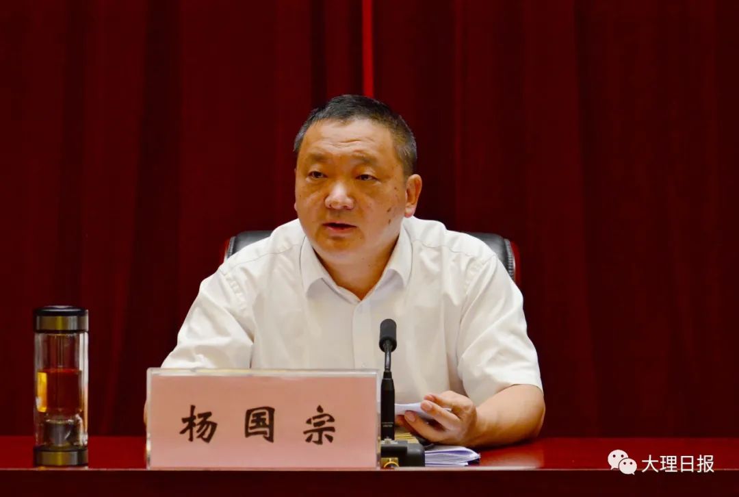 州委书记杨国宗讲话。州人大常委会主任张剑萍、州政协主席朱建斌出席会议。