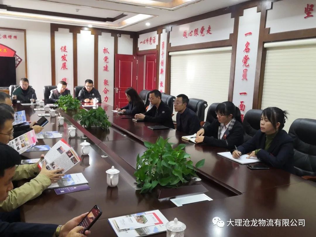 云南省交通运输厅调研组一行到大理沧龙物流调研指导工作 2023-02-06 来源: 编辑: 浏览量:925 11月4日,由省交通运输厅运输处、综合执法局交通发展中心以及相关处室负责人组成的调研组在州交通运输局杨绍林科长、州交通运政管理处施华平处长的陪同下到大理州企业家协会常务副会长单位——大理沧龙物流有限公司调研指导。 调研组来到沧龙物流后,受到公司董事长龚勇全和全体员工的热情欢迎。随后,调研组依次参观了公司的荣誉室、企业文化长廊。 在会议室进行了座谈交流,公司董事长龚勇全首先向调研组详细介绍了公司在绿色物流、绿色能源、绿色食品三大板块近两年的生产经营情况和“十四五”期间公司的转型升级产业发展规划。其中,大理沧龙物流综合物流园项目在上登片区,于今年上半年开工,将在年底竣工。项目建成后将是大理州标准较高、规模较大的第三方物资存储仓库,园区引进智慧平台管理系统,全力打造智慧化物流园区管理。另外,公司在上和物流园和剑川县的两个物流园项目也即将进入施工阶段。三个园区建成后将形成多点辐射的仓储物流网络格局,为公司的转型升级助力。 调研组在了解了公司的基本情况和转型升级发展规划后,对公司近几年的发展给予了充分的肯定。欧阳学兵处长进一步询问了公司在绿色能源发展方面的情况。他表示企业发展要紧跟政策导向,拓宽思路,转型升级步子要稳,要多思考、多调研,并始终坚持走绿色发展之路。
