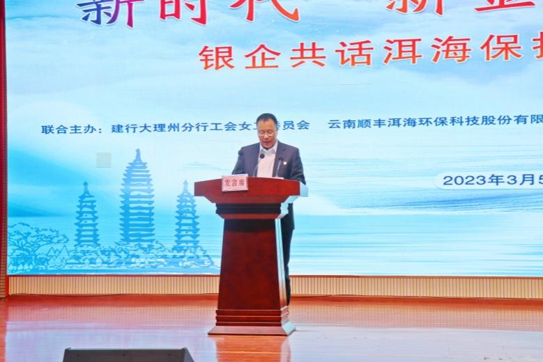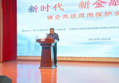 云南顺丰洱海环保科技股份有限公司党委书记、董事长、总经理钟顺和致欢迎词。表示银企合作,充分发挥各自优势,不断加大合作力度,努力实现优势互补、互惠互利,共同为洱海保护做出更大贡献。