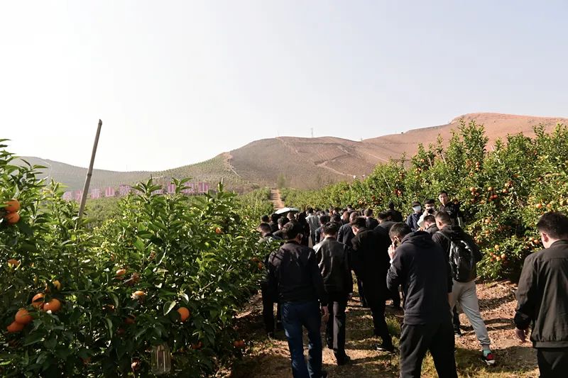 考察宾川县云福农副产品加工有限责任公司万亩柑桔示范园时,在公司负责人的引领下,大家参观了种植园,并听取了对整个种植园的规模、布局、基地的亮点配套设施及生产管理经验的详细介绍。