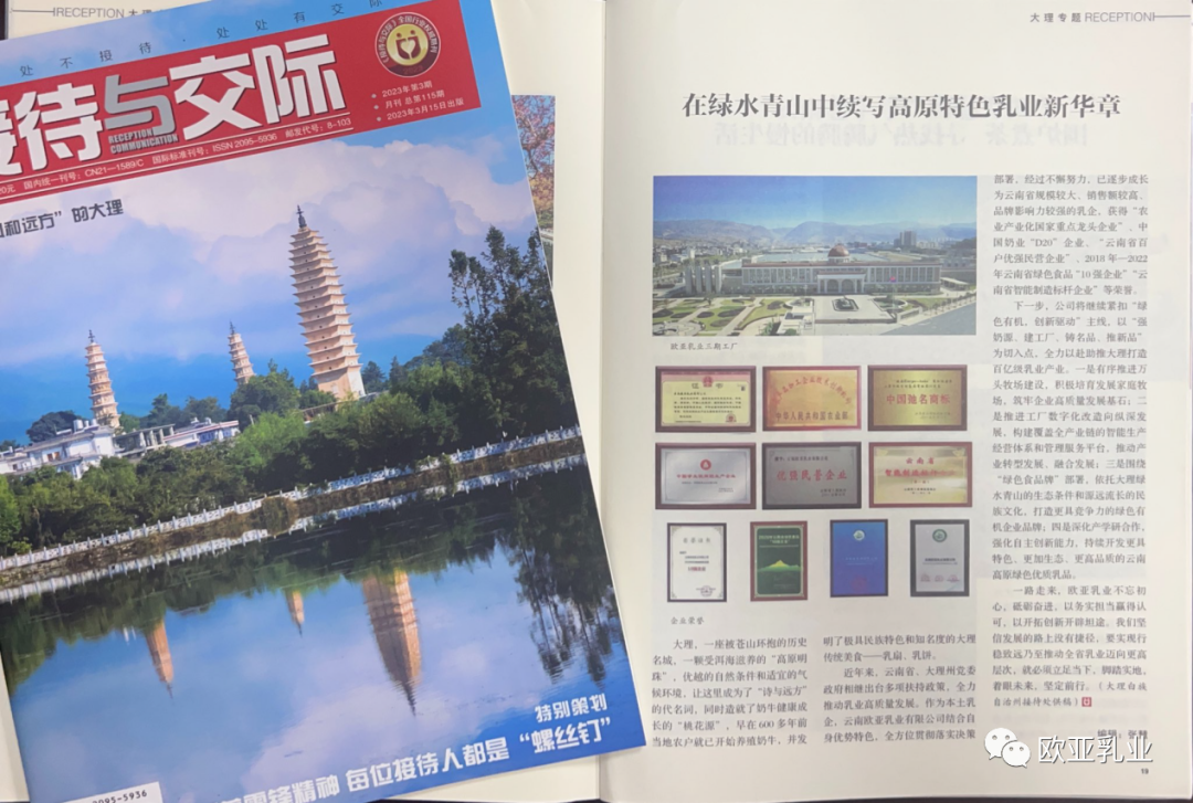 借鉴全国接待交际工作培训研讨会平台,公司助力“接待+特色,让大理农特产品走入接待”,助推云南高原特色乳品走向全国。公司产品精致美观,丰富多样,受到了参会人员的关注和好评。自成立以来,欧亚乳业初心不改,脚步坚实,通过优质奶源基地建设、工厂数字化改造升级、自主创新能力提升、绿色有机品牌培育、线上线下渠道拓展等措施,务实助推云南奶业谱写崭新篇章,努力为消费者奉献更多来自云南大理的绿色优质乳品。