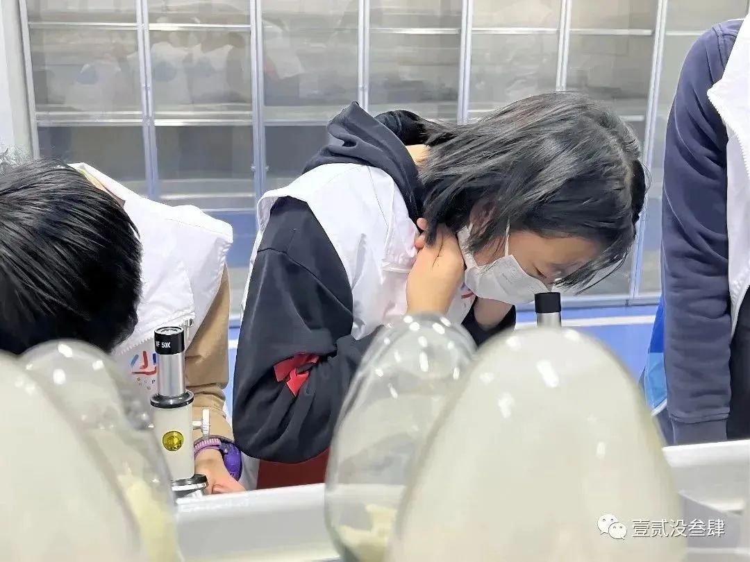 孩子们怀着心中最大的疑问来到了研发技术中心,在专业技术人员的带领讲解下,孩子们不仅看到了“酸奶的灵魂”——菌种真实的样子,还了解了菌种的多样性。随后,孩子们在技术人员的教导下,学习了如何使用显微镜及制作样本,还通过显微镜观察了菌种及其他植物细胞的结构,在观察过程中,经常能听到孩子们一边喊着“哇塞,我看到了,快来看,好神奇啊!”一边招呼自己的小伙伴一同观看,分享这份喜悦。