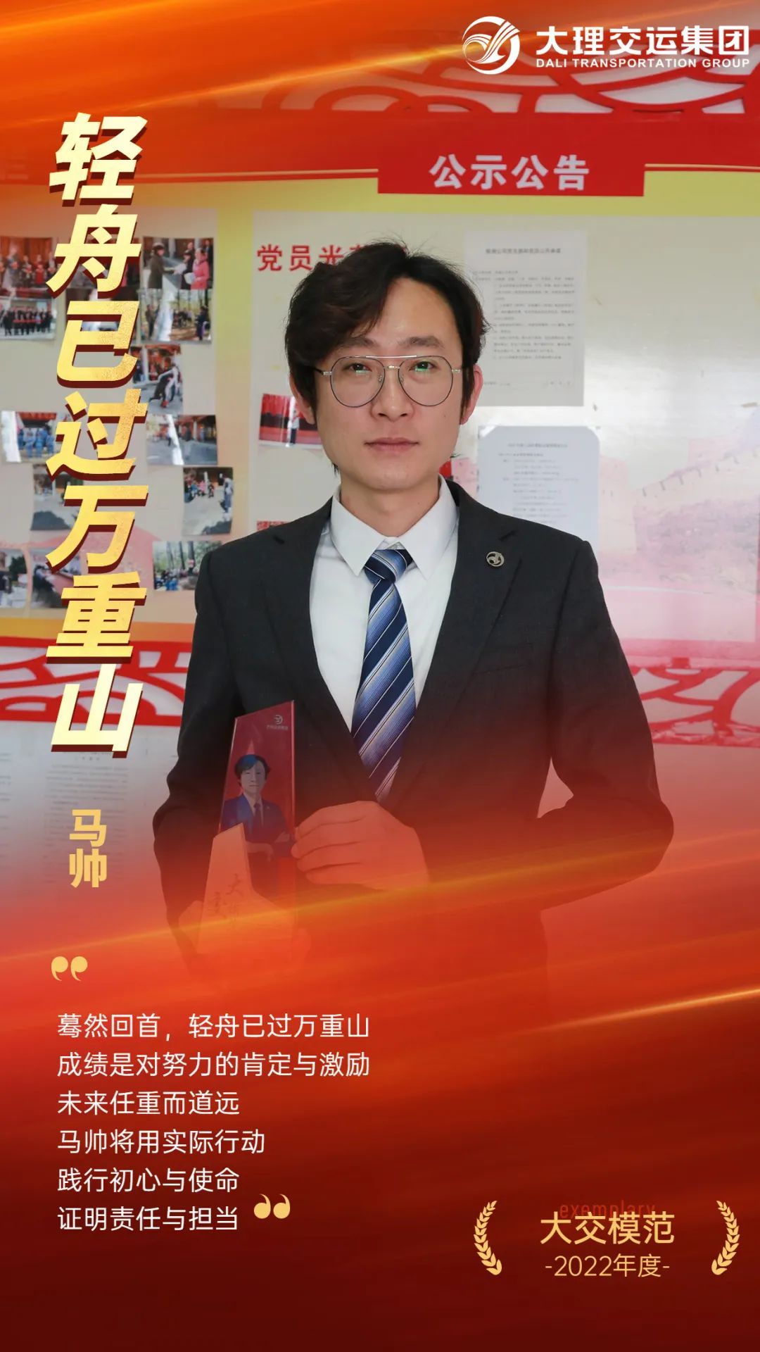 马帅,中共党员,2008年入职大理州企业家协会常务副会长单位——大理交通运输集团公司,先后担任大理汽车客运站站长助理、副站长,集团公司经营计划部副部长,金潮物流公司常务副总经理。现为集团公司汽车服务事业部副总经理,兼任汽车服务事业部市场总监、检测总监职务。